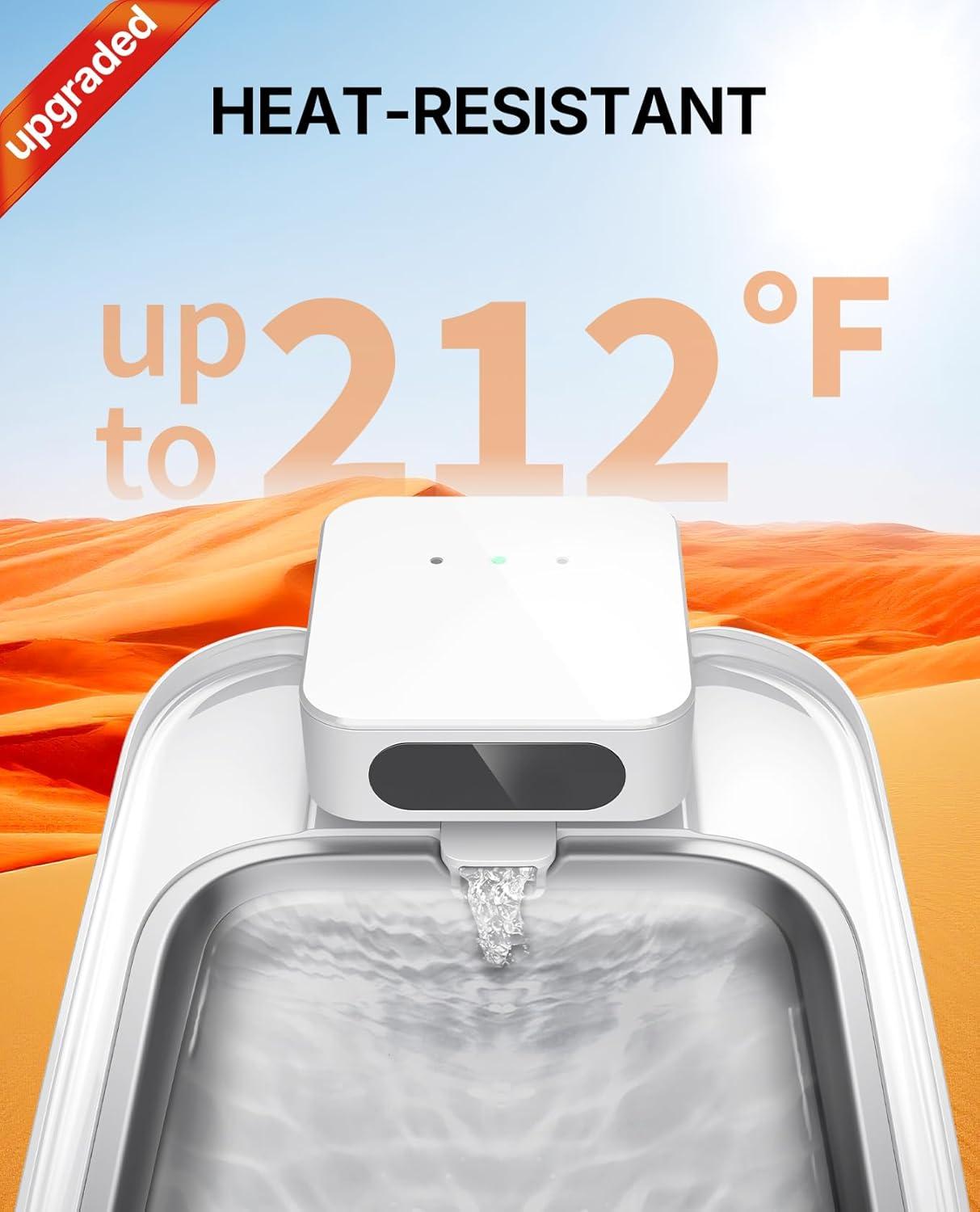 Super Quiet: Our wireless pump with a sound of less than 25dB, you can sleep peacefully even if the fountain is next to you and your pets.